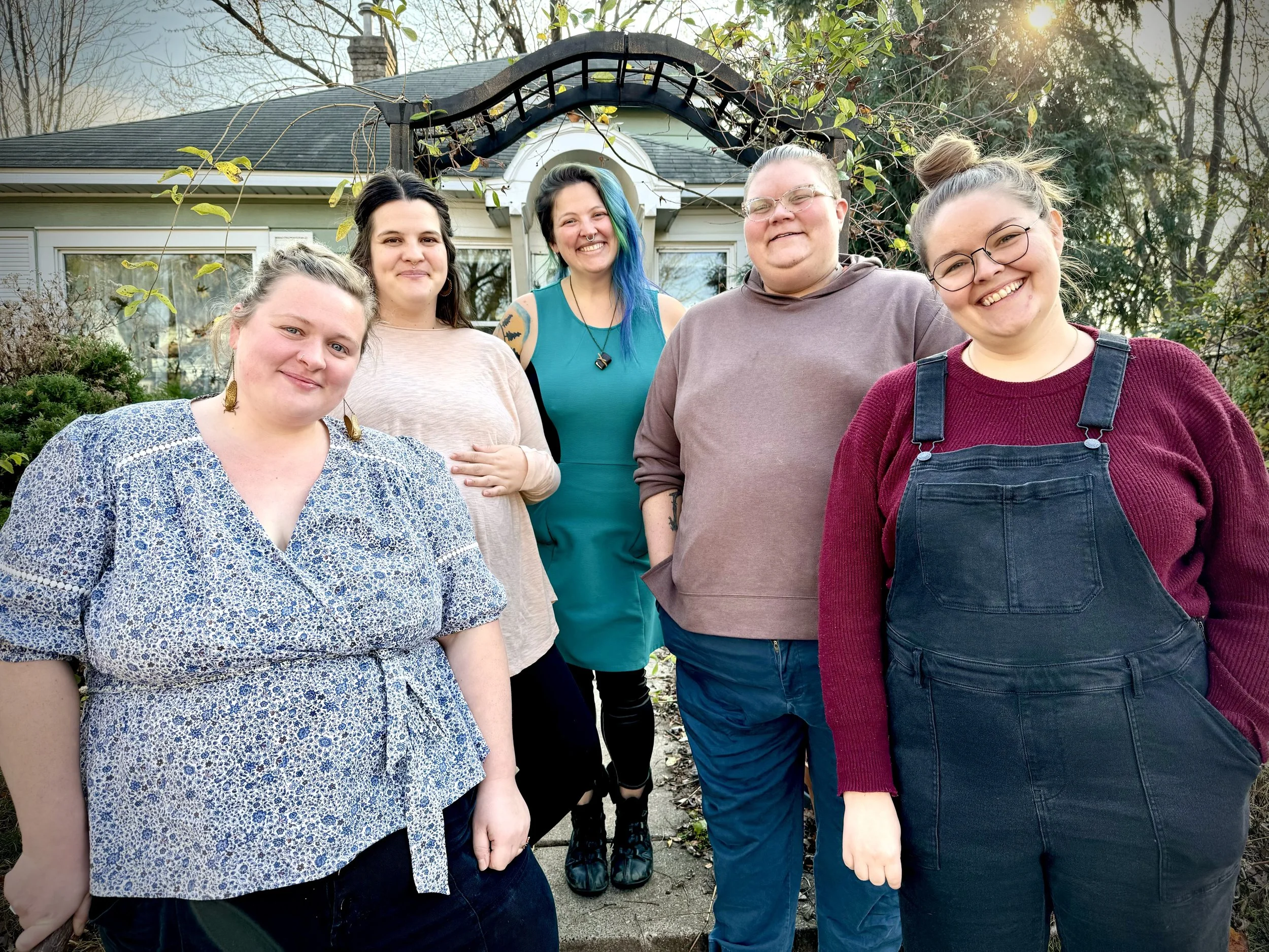 From left to right: Mackenzie (she/her), Megan (they/she), Shea (they/them), Ellyn (she/her), and Leona (she/they). Our team is enthusiastic, loving, and warm— we work together in a unique collaborative that means sustainability for us and holistic, multi-tiered support for our clients. Book a Meet The Birthworkers consult to learn more! Click Here to schedule a free Meet the Birthworkers consult.